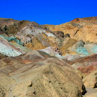 Der Artist Drive ist ein Rundkurs durch eine Sammlung von Bergen und Canyons, die man sich schöner nicht vorstellen kann. Die Artists Palette ist wie der Name schon sagt, ist ein Farbensammelsurium kleiner Berge und Hügel inmitten großer Berge. Farblich zusammengestellt wie auf einer Palette. Der Kurs ist ca. 7 km lang.