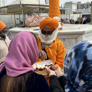 Nach dem Gebet wird eine Hymne aus der Heiligen Schrift vorgelesen und dann wird Karah Parshad, eine Suessigkeit, die aus Griess, Mehl, Zucker und Butter gemacht wird, unter der Gemeinde verteilt.