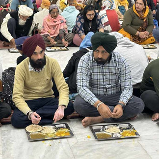 Die zwei wichtigsten Merkmale des Gurudwaras sind "Sangat" (Kongregation) und Pangat (Gemeinschaftskueche), auch* Guru ka Langar," genannt. Diese Gemeinschaftskueche bietet allen Anhaengern und Besucher kostenloses Essen an. Es ist ein Symbol von Gleichheit und Bruederlichkeit. Hier essen alle gemeinsam-Die Reichen und die Armen, die Gebildeten und die Analphabeten, Koenige und einfache Leute. Alle setzen sich gemeinsam in einer Reihe, um zu essen. Die Kueche wird von Beitraegen aller Glaeubigen finanziert. Die Institution von Langar hilft, soziale Gerechtigkeit zu schaften.