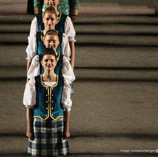 22:40 Uhr, zehn Minuten verspätet, beginnt das Spektakel, das dieses Jahr unter dem Motto Splash of Tartan läuft. Es wird traditionsgemäß von den Massed Pipes and Drums - einer Zusammensetzung aus vielen Pipe and Drum Bands (oder wie man die nennt) begonnen. Es folgen Bands aus Indien, den USA, England, Frankreich und immer wieder sind Tanz- oder Gesangseinlagen zu hören.