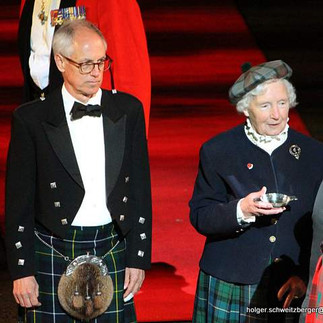 Wir haben das Schloss genau frontal vor uns, das Vorprogramm läuft bereits. Es werden dabei Honorationen aus Edinburgh und einige Clanchefs vorgestellt.