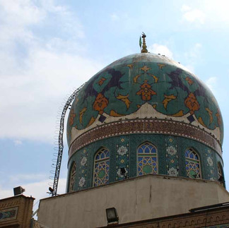 Auf dem Weg dahin kommen wir zur Imamzadeh Saleh Moschee, einem Prachtbau, in dem im Moment wohl Gebetsstunde ist. Alle Frauen müssen mit einem weißen Tschador herum laufen. Also, natürlich nur die, die keinen eigenen anhaben. Und Heidi. Sie wurde sicher übersehen und wird nun von allen erstaunt angeblickt. Wir bewundern noch die Schönheit des Bauwerkes und setzen danach unsere Teehaussuche fort.