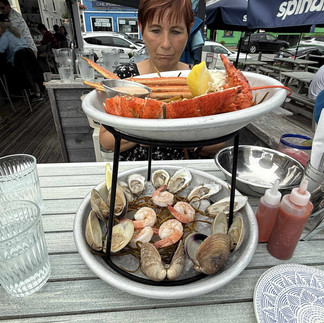 In einem der vielen Fischgaststätten lassen wir uns nieder. Wir sitzen auf dem Patio, Heidi mit Blick aufs Meer, ich mit Blick auf Heidi.