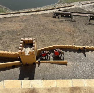 Das Amber Fort, auch bekannt als Amer Fort, wurde im 16. Jahrhundert unter der Herrschaft von Raja Man Singh I. erbaut, einem General des Mogulkaisers Akbar. Die Festung wurde auf einem Hügel aus Sandstein errichtet und diente als Residenz für die Könige von Jaipur, bis die Hauptstadt im 18. Jahrhundert nach Jaipur verlegt wurde. Das Amber Fort vereint Elemente der hinduistischen und muslimischen Architektur und ist bekannt für seine imposante Fassade, seine prächtigen Paläste, Gärten und Innenhöfe sowie für seine kunstvollen Verzierungen und Schnitzereien.