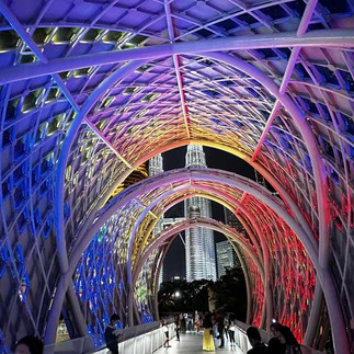 Die Brücke und die Petronas Towers wollen wir auch schon gern illuminiert sehen, also machen wir uns 18:30 Uhr auf den Weg zur Station KLCC. Es ist allerdings noch nicht dunkel und so trinken wir noch einen Wassermelonencocktail mit Lychies.