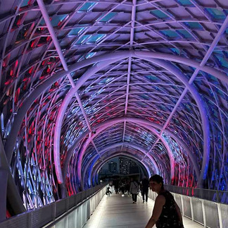Um zu den Türmen zu gelangen führt der Weg über die Saloma Brücke. Auch diese ist eine architektonische Meisterleistung. Abends ist sie noch verschieden farbig illuminiert, am Tag ist sie aber auch schön.