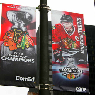 Al Capone trifft man übrigens an fast jeder Ecke. Er ist sicher das Wahrzeichen der »Windy City«, wie sich Chicago selbst nennt. Auch das die Chicago Blackhawks dieses Jahr nach 42 Jahren wieder NHL-Champion geworden sind macht ganz Chicago stolz. Überall hängen Fahnen und Plakate, die den Blackhawks gratulieren. Na gut, das machen wir dann auch.