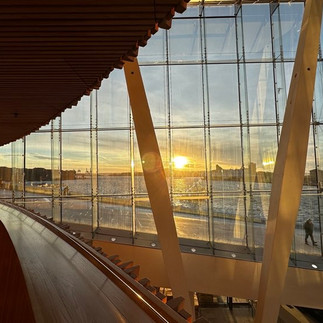 Zwischen den einzelnen Etagen hat man immer wieder einen herrlichen Blick auf den Fjord und die Oper.