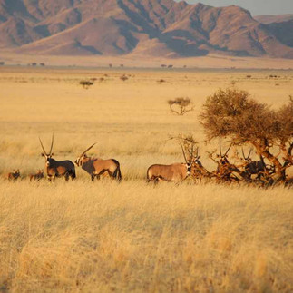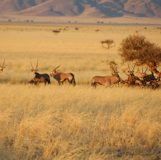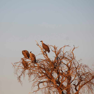 Die Tour geht zwei Stunden, wir sehen viele Oryx und Springböcke und zum Schluss auch Geier. Ja, heute morgen haben wir Geier gesehen. Warum? Gestern ist ein Oryx oder Springbock verschieden und sofort sind sie gekommen um vom Aas zu zehren.