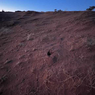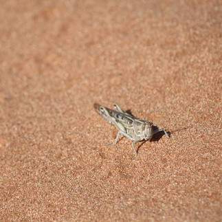 Zurück auf der Campsite machen wir eine Wanderung durch die herrlichen Dünen. Wir entdecken ein Wasserloch - ganz nah von uns entfernt. Vielleicht sehen wir ja heute Abend ein paar Tiere. Spuren von ihnen gibt es reichlich, wie auch die vielen kleinen Insekten und Geckos die hier überall herum flitzen.