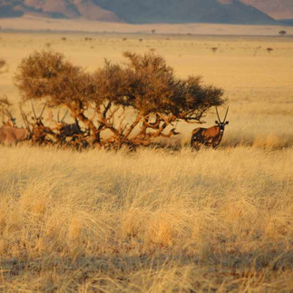 Nach knapp zwei Stunden sind wir wieder zurück. Wir trinken Kaffee, essen Kekse und hören dabei Tommy Jauds "Überman". Danach ziehe ich mich zu einer Siesta zurück und während ich ruhe, hat Heidi das Glück einen Oryx in unserer Nähe zu beobachten und zu fotografieren.