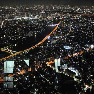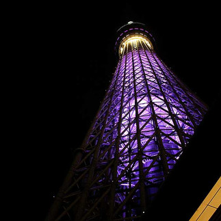 Mittlerweile ist es 19:15 Uhr und schon so dunkel, so das vom Sky Tree das Lichtermeer der japanischen Hauptstadt gut zu sehen sollte. Wir laufen die knapp ein Kilometer lange Strecke zum Eingang des Riesenturms und kaufen zwei Tickets für die erste Plattform in 345m Höhe.