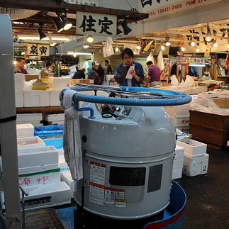 Es wird tatsächlich dann geöffnet, als mein Sekundenzeiger die 12 erreicht. Langsam wird mir Japan unheimlich. Auf dem gesamten Marktgelände herrscht immer noch emsiges Treiben, die kleinen elektrobetriebenen Transportfahrzeuge fahren im Affenzahn hin und her, und überhaupt sind die meisten Arbeiter in hektischer Betriebsamkeit.