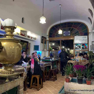 Da unser Hungergefühl immer stärker wird, erinnere ich mich an eine traditionelle Teestube, die ich gestern im Internet fand. Sie bietet persische Gerichte an und ist bei den Einheimischen sehr beliebt. Das Azari Tea House befindet sich in der Nähe des Hauptbahnhofs und da wollen wir jetzt hin.