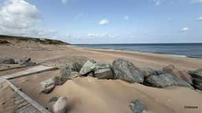 Wir sind komplett allein an diesem schönen Strand, der Wind bläst ab und zu kleine Sandstürme über ihn, man fühlt sich wie in der Sahara. Nur kälter und mit Wasser.